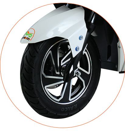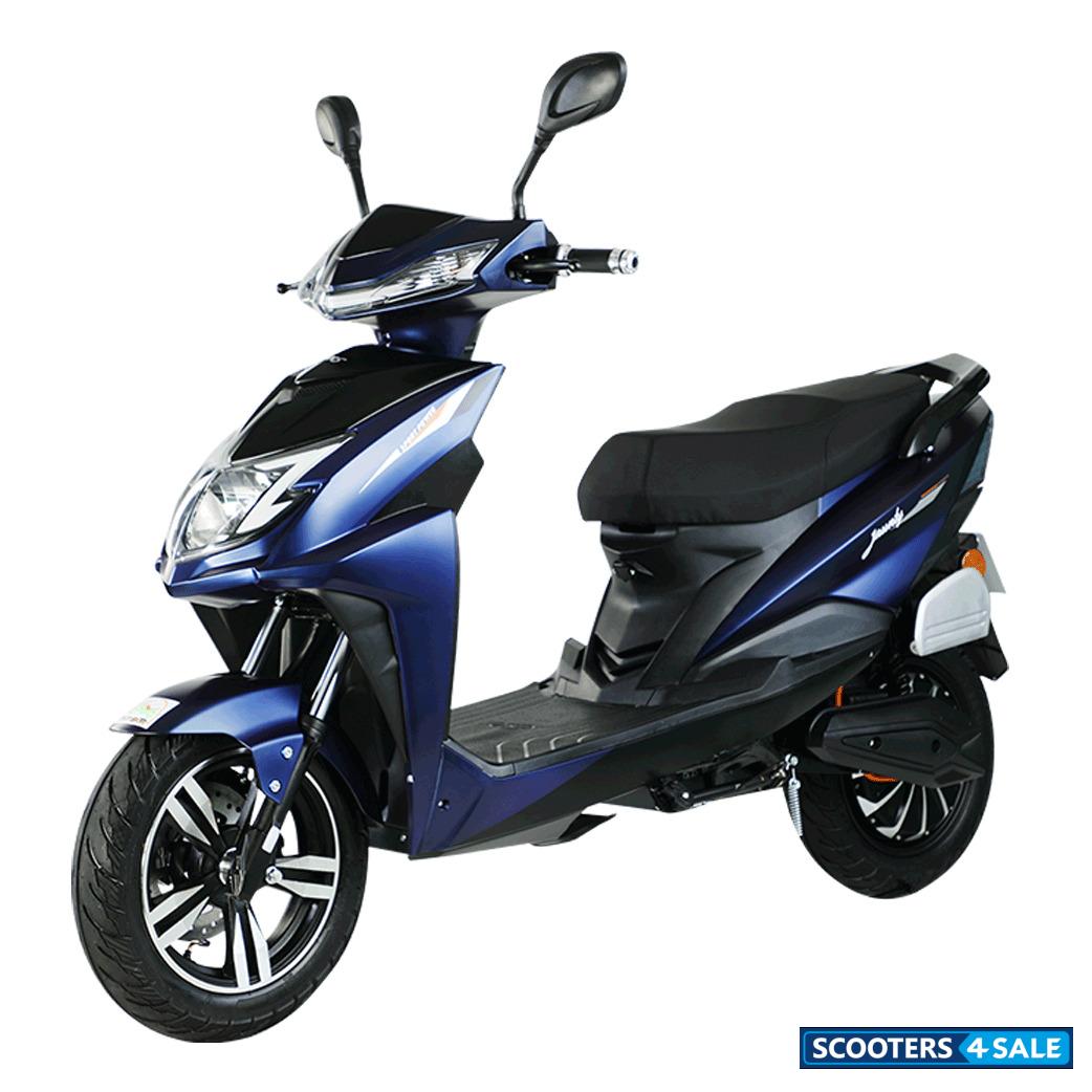The Amo Jaunty Electric Scooter is available in several stylish colors such as red, white, yellow, blue, and grey. Additionally, the scooter has a range of features that make it a great option including a digital display, VRLA 60V26Ah/60V32Ah battery with a warranty of one year, LED headlamp, electronic assisted braking system, and USB-based mobile charging.