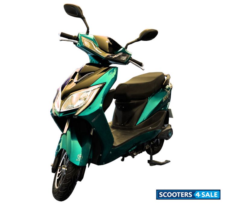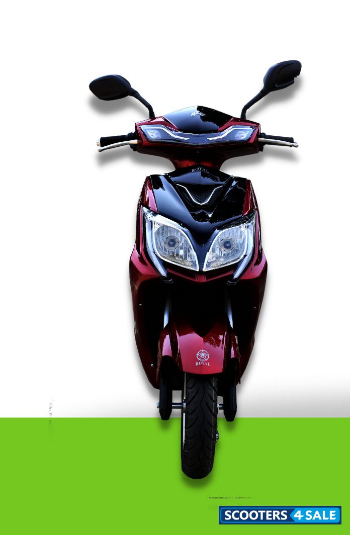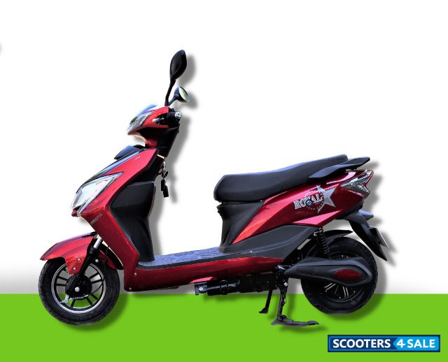 The BSM E-Bikes Royal Electric Scooter comes in four different colors: Maroon, Silver, White, and Black. It has a top speed of 25 km/h and a range per full charge of 45-50 km with a lead acid battery. The scooter can be powered by either a lithium-ion or lead acid battery with a voltage of 48 or 60 volts. The lead acid battery's capacity is 28 Ah, while the lithium-ion battery can have a capacity of 25 Ah, 28 Ah, 30 Ah, or 32 Ah. The scooter is equipped with drum brakes on both the front and rear wheels, as well as telescopic suspension in the front and coil spring suspension in the rear. The scooter rides on 12-inch alloy wheels with tubeless tires on both the front and rear wheels. The dimensions of the scooter are 1700 mm in length, 700 mm in width, and 1300 mm in height. It has a weight of 100 kg and ground clearance of 120 mm.
