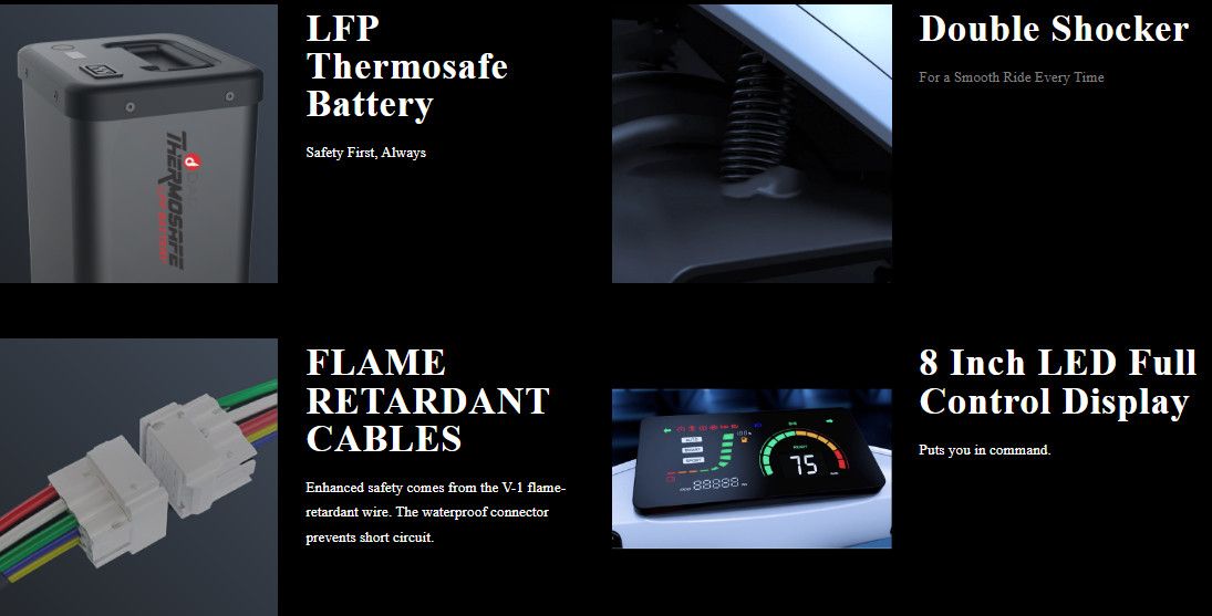 | Battery | 72V 30Ah LFP battery weight: 23.4 kg |