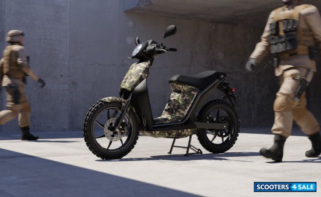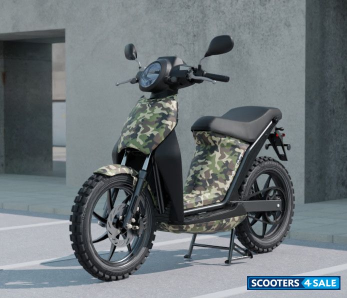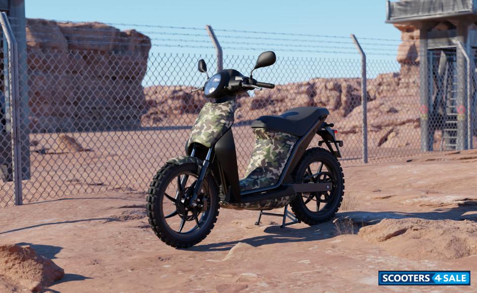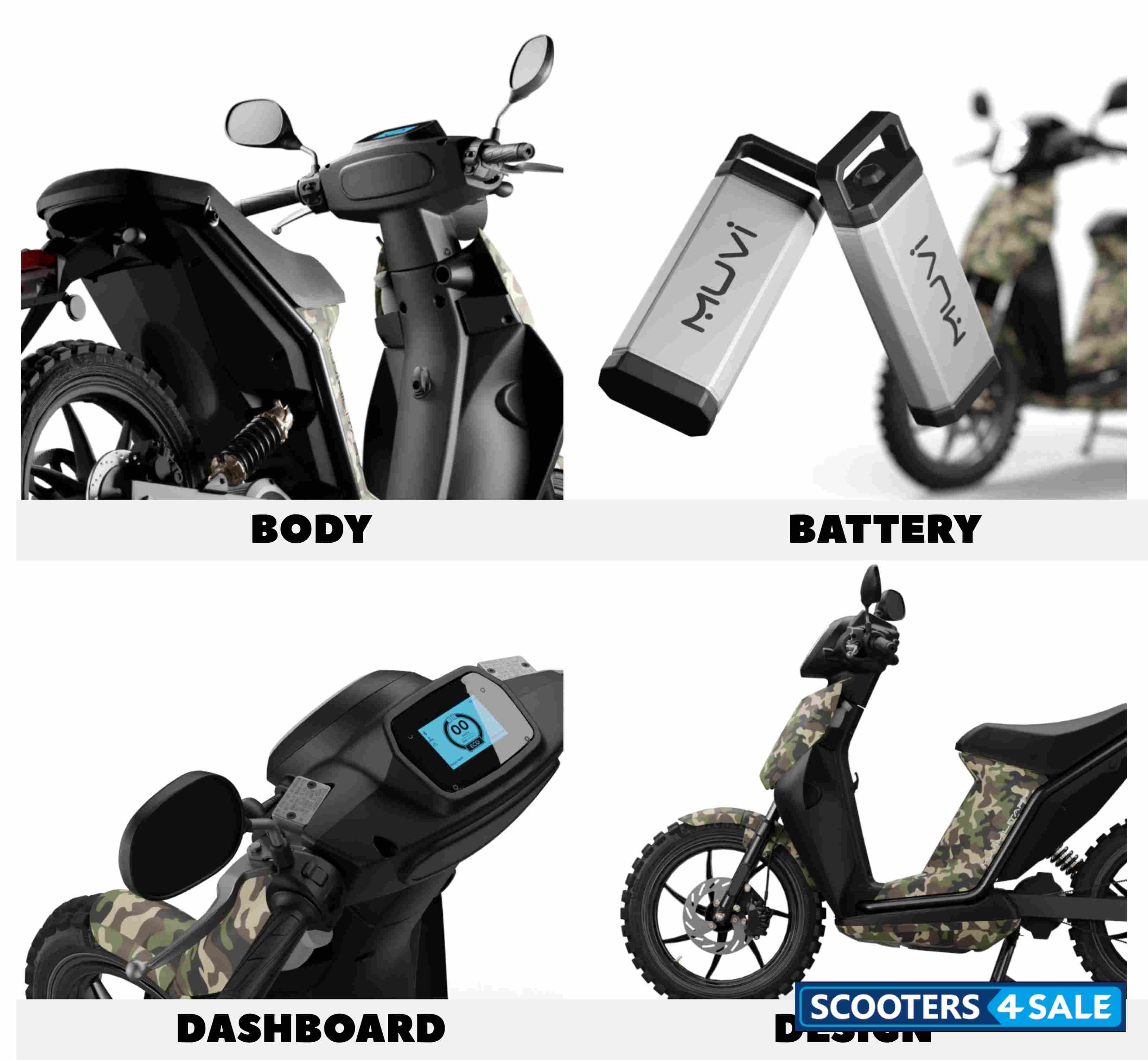The eBikeGo Muvi Military Electric Scooter features a Torrot BRUSHLESS 48V engine, providing 4.1 Hp and 35 Nm of torque. Its maximum range extends to 85 km, making it a practical choice for daily transportation. The scooter includes an LCD 4" display customizable via the app and a removable 48V 35.2Ah Li-ion battery. With a robust tubular steel frame, hydraulic suspension, and an efficient hydraulic combined brake system, it offers a smooth and secure ride.