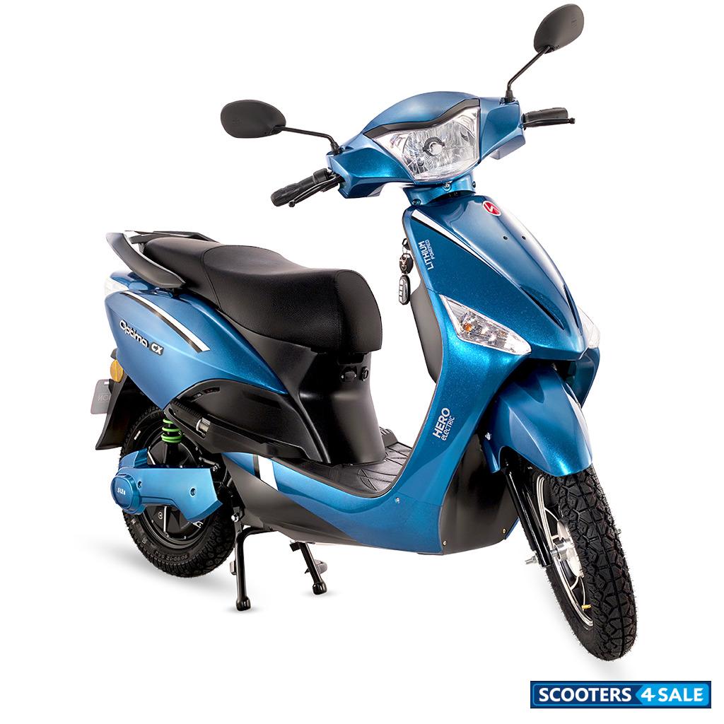 The Hero Electric Optima CX is a city speed electric scooter with a single battery option. It has a range of 82 km per charge and a maximum speed of 45 kmph. The motor power is 1200 W and the battery capacity is 51.2 V / 30 Ah. The charging time for the scooter is around 4-5 hours. It has a BLDC Hub Motor and a Lithium Ion battery type. The scooter is made of ABS material and it has a push button start feature. The front brake type is disc and the fuel type is electric. Prices for the Hero Electric Optima CX single battery electric scooter start at around Rs. 67,190(Ex-showroom Price).