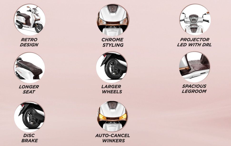 The Hero Destini 125 ZX Plus runs on a 124.6cc air-cooled, fuel-injected engine producing 9 PS at 7000 rpm and 10.4 Nm at 5500 rpm. A telescopic fork at the front and a single coil spring hydraulic setup at the rear contribute to ride comfort and stability. The scooter features a digital-analog instrument cluster, displaying essential ride data with clarity. An LED headlamp enhances visibility, while chrome accents on the body panels add a refined touch.