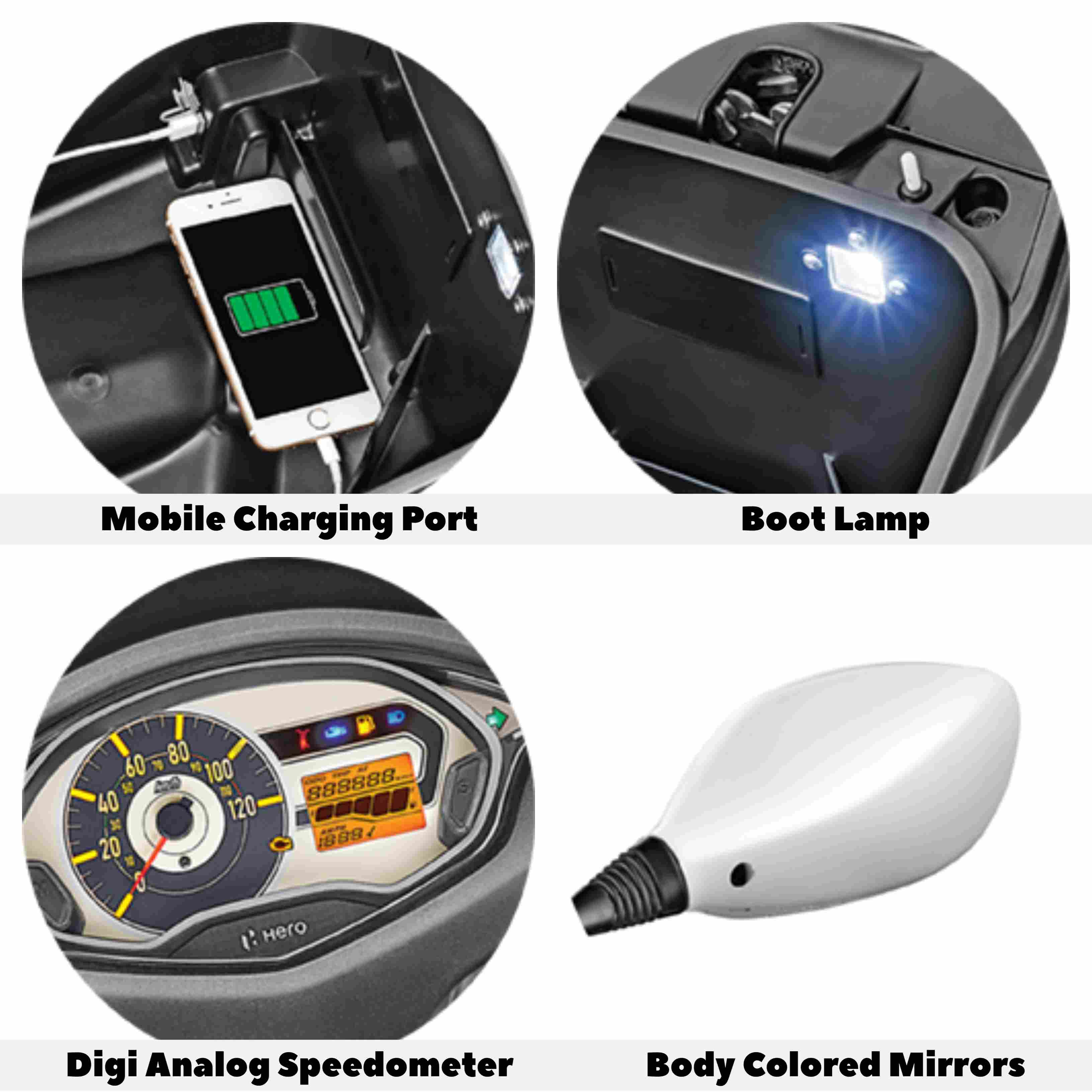 The Hero Destini Prime Scooter, priced at an affordable ₹ 75,469, is available in attractive colors like Pearl Silver White, Nexus Blue, and Nobel Red. This budget-friendly option offers a reliable and fuel-efficient ride powered by a 124.60 cc Air Cooled, 4-Stroke engine with Fuel Injection. With features like Electric/Self-Start, Telescopic Fork suspension, and a 5-liter fuel tank, it's a practical and stylish choice for daily commuting. Its sleek design and 115 kg kerb weight make it easy to handle, while the 778 mm seat height ensures comfort. Hero Destini Prime combines affordability with efficiency, making it an excellent value for money.