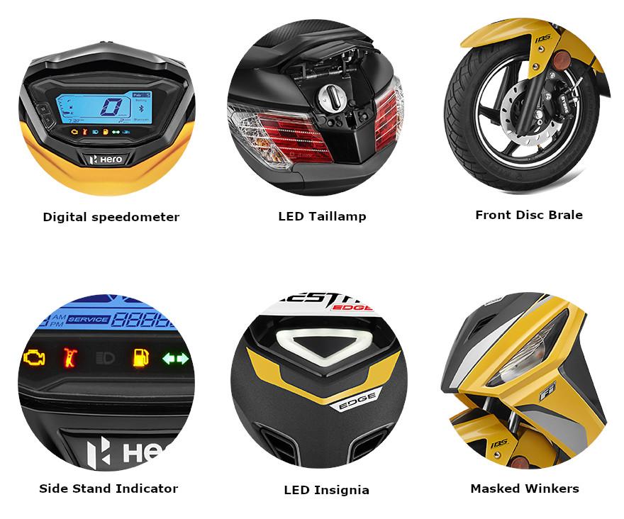 Where the Maestro Edge 125 really shines, however, is in its technological and aesthetic features. The scooter is packed with convenience features such as Bluetooth connectivity, an inbuilt mobile charger and boot light, and the useful Hero Connect system. Additionally, it sports stylish design elements such as LED insignia, masked winkers, and a dual-tone stripe pattern. With the smart addition of a side stand engine cut-off, it's clear that Hero has put thought into both safety and style.