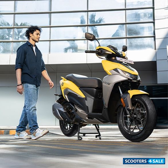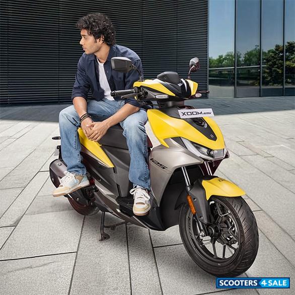 The Hero Xoom 125 produces 9.9 Ps at 7500 rpm and 10.4 Nm at 6000 rpm from its 124.60 cc engine. The front employs a telescopic hydraulic shock absorber, while the rear has a single-side shock absorber with an adjustor. This setup ensures a smooth experience across urban roads and light uneven surfaces. Its engine performance aligns well with daily commuting requirements. The suspension system provides a stable and comfortable ride for varied conditions.