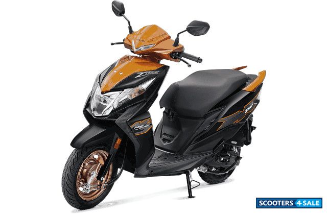 The Honda Dio Deluxe Scooter offers a superior ride experience with its 109.51 cc Fan Cooled, 4 Stroke, SI Engine which delivers a robust 7.76 PS power. The scooter offers excellent control with drum brakes and a telescopic front suspension, complemented by a 3-step adjustable rear suspension. The digital meter, stylish gold-colored alloy and convenient features like an external fuel lid, engine start/stop switch and side stand engine cut-off enhance the riding experience. Its silent start with ACG makes it stand out. Priced at Rs. 72,626 ex-showroom Delhi, it offers a perfect blend of style, comfort and performance.