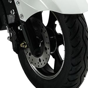 The Okaya Classiq 150 Plus Electric Scooter has a stylish LED headlamp with DRL, which adds to its overall aesthetic appeal. The Front Brake is Disc type and Rear Brakes are drum type. The front suspension is telescopic type and the rear suspension is spring loaded. The stylish aluminum alloy wheels and front & rear 3.00x10 Tubeless provide a smooth and comfortable ride.