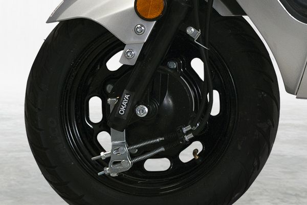 The Okaya Faast F2T comes with a digital display , LED headlamp and tail lamp, 12" tubeless tyres and front telescopic suspension, rear dual spring-loaded suspension, drum brakes on both front and rear wheels with 130 mm and 110 mm diameters respectively, making it a safe and comfortable ride.