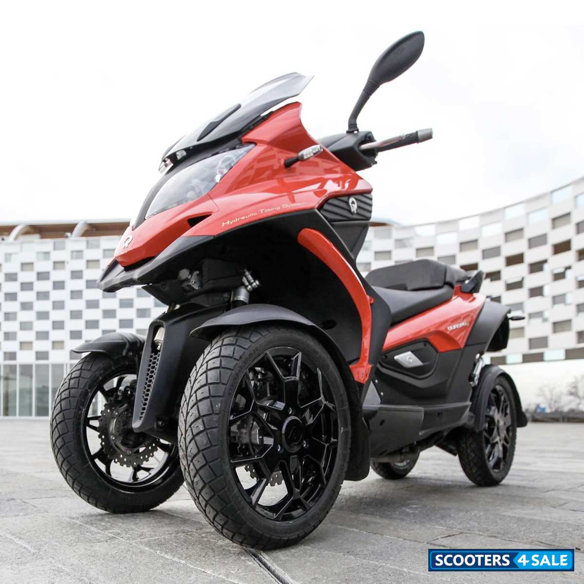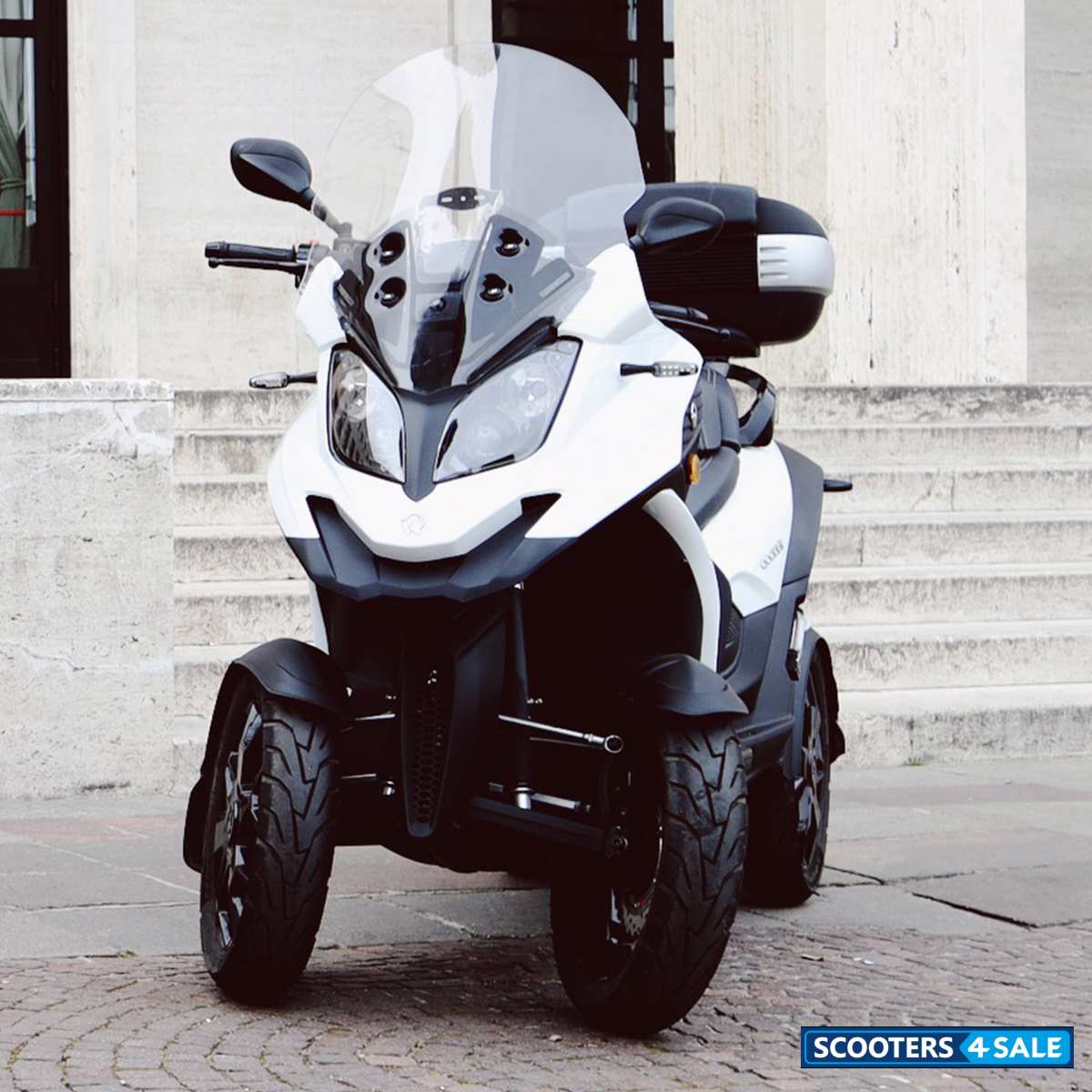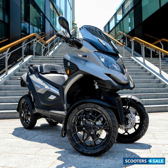 The Qooder Scooter is an innovative and unique four-wheeled vehicle that provides a different type of riding experience than traditional scooters. The sleek design is available in several different colors, including Glossy Snow White, Glossy Swiss Red, Matte Ceresio Blue, Matte Titanium Grey, and Matte Raw Black. The Qooder has a powerful 399cc motor that produces 32.5 horsepower and 38.5 Nm of torque. The engine is a single cylinder, 4 stroke, and 4 valve design with a bore x stroke of 84mm x 72mm.