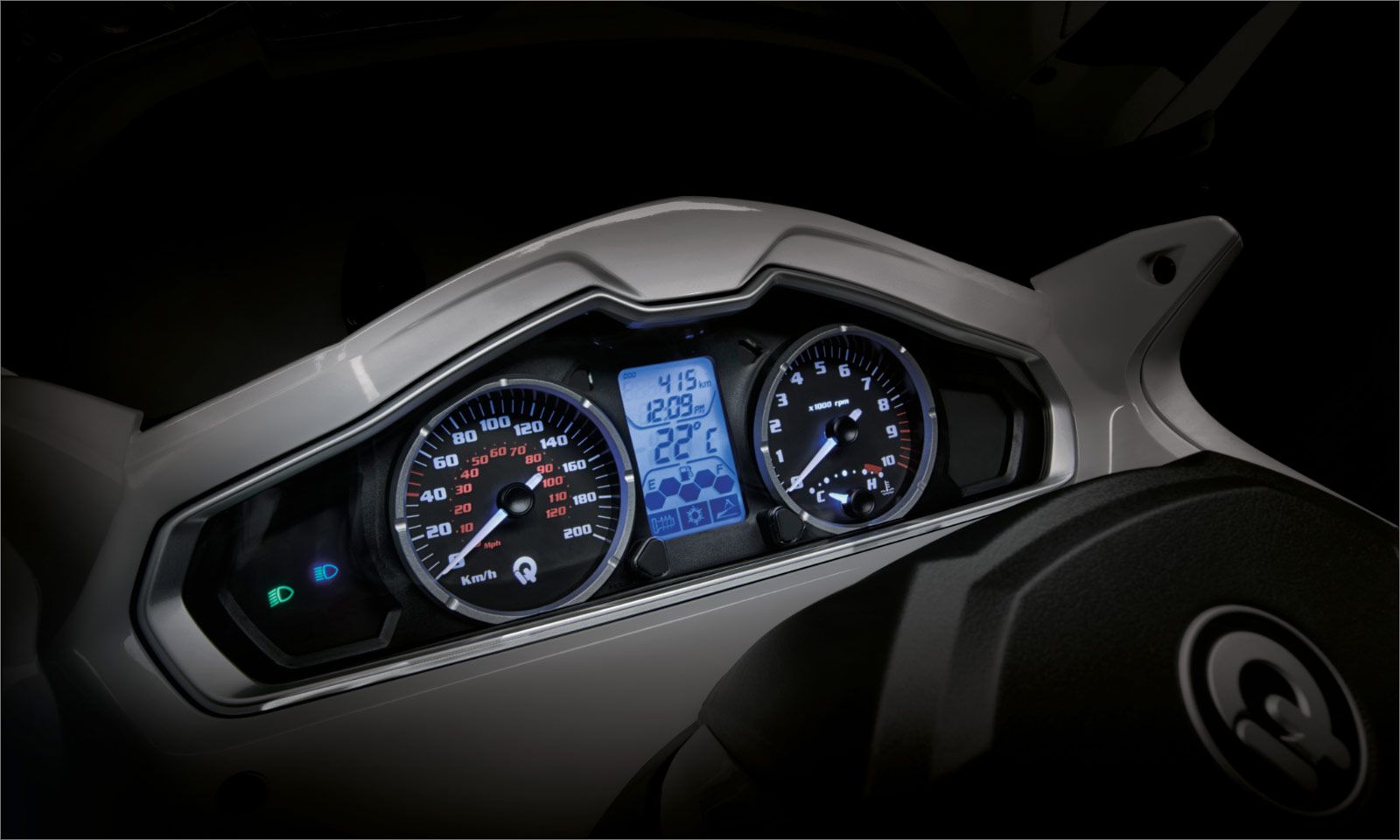 The Qooder also features an advanced dashboard that includes a rev counter, tachometer, and trip computer with a liquid crystal display. The aerodynamic protection and slender handlebars make for a comfortable and stable ride, while the integral braking system and two front compartments with 12V socket and USB provide added convenience and safety.