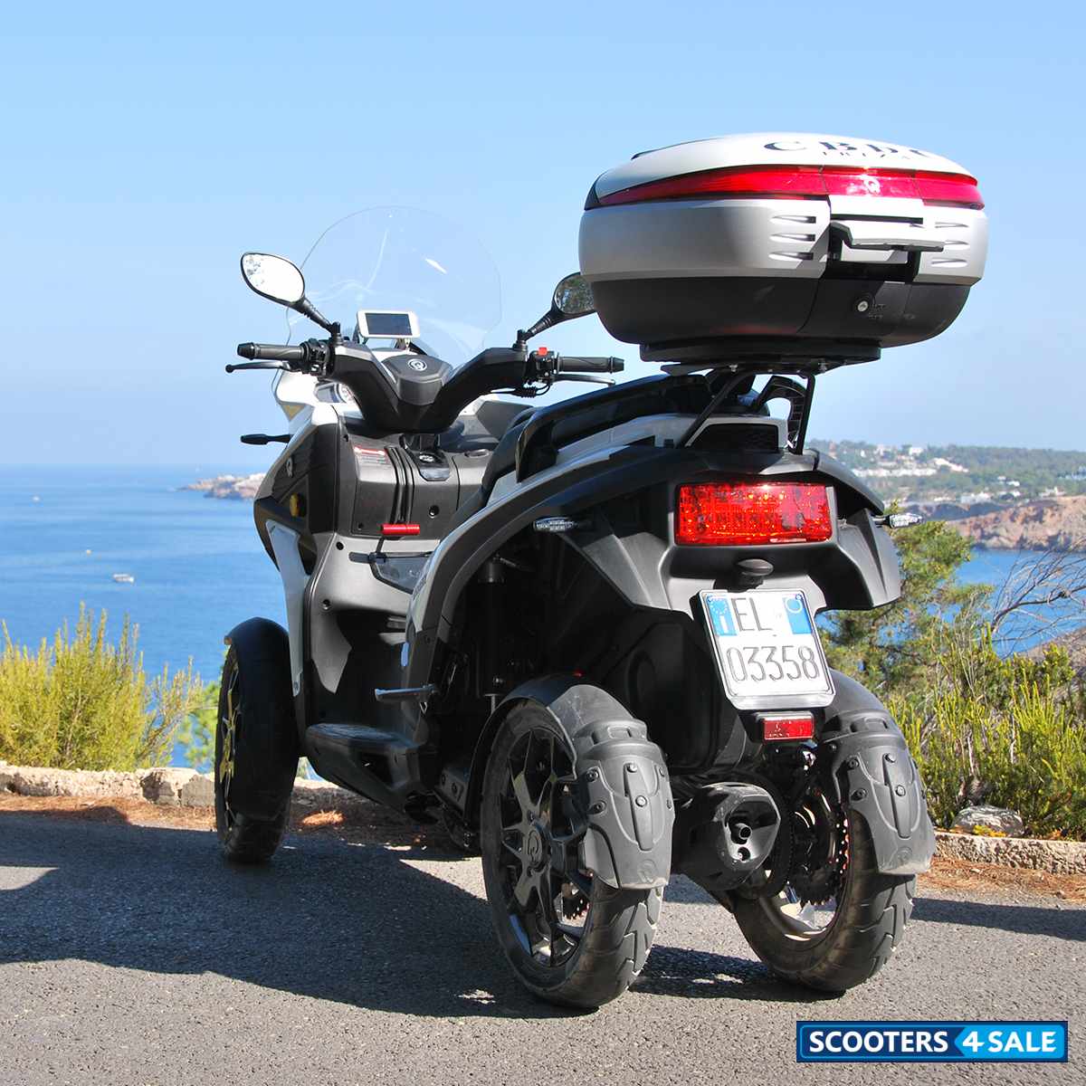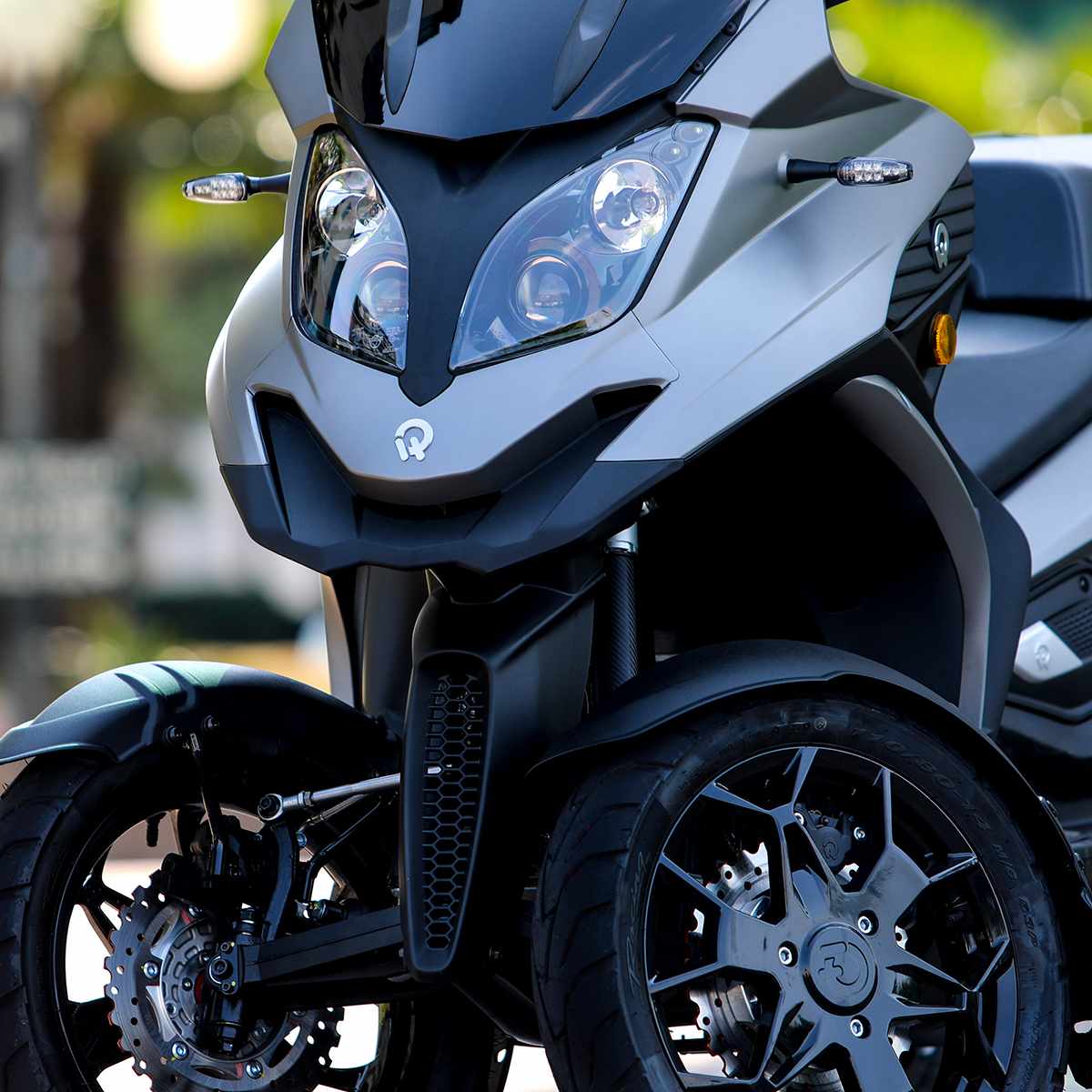| Homologation : Euro 4 - L5e-A Consumption : 5,3 l/100 km (WMTC homologation data) Emissions : CO2 122 g/km (WMTC homologation data) Front track : 550 mm Rear track : 450 mm Steering angle : 35° Braking system : Left lever and pedal: all-wheels braking - Right lever: front wheel braking |