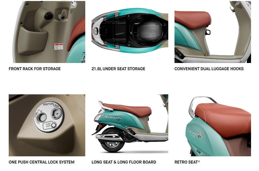 Additionally, the Access 125 features a generous 21.8-litre under-seat storage, a practical addition for city riders. The choice between drum or disc front brakes and alloy or cast wheels provide options to cater to various preferences. The retro seat is a charming touch that complements the overall aesthetic while promising comfort. All these make the Access 125 Ride Connect Edition a smart and stylish choice for daily commuting.