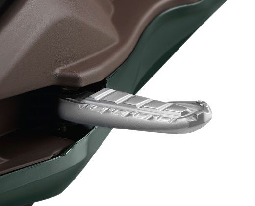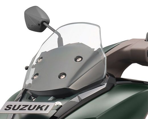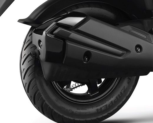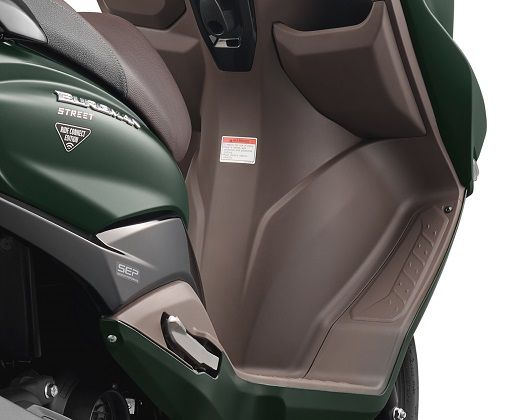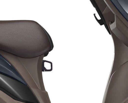 Other notable features include the dual-tone seat color, dual-tone inner leg shield, standard body-mounted windscreen, flexible foot position for rider, 21.5L under-seat storage, and convenient dual luggage hooks. The scooter also comes with a shutter key with central seat lock and aluminum pillion footrest.