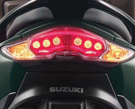 One of the key features of this scooter is the Bluetooth-enabled digital console, which allows riders to connect their smartphones with the scooter and access various features such as navigation, music, and calls. The scooter also features an engine start and stop switch with Suzuki Easy Start System, a USB socket, luxurious LED headlights and position lights, and a sporty muffler cover.
