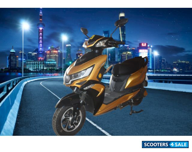 The Transmobility ACE Falcon Electric Scooter is powered by a Li-Ion(Po4) Battery (60v 36Ah) and comes with a micro charger with auto cut. The scooter is equipped with a projector headlight with DRL and an LED stop lamp with 4-point indicator for better visibility at night. The front and rear wheels are equipped with disc brakes for better stopping power.