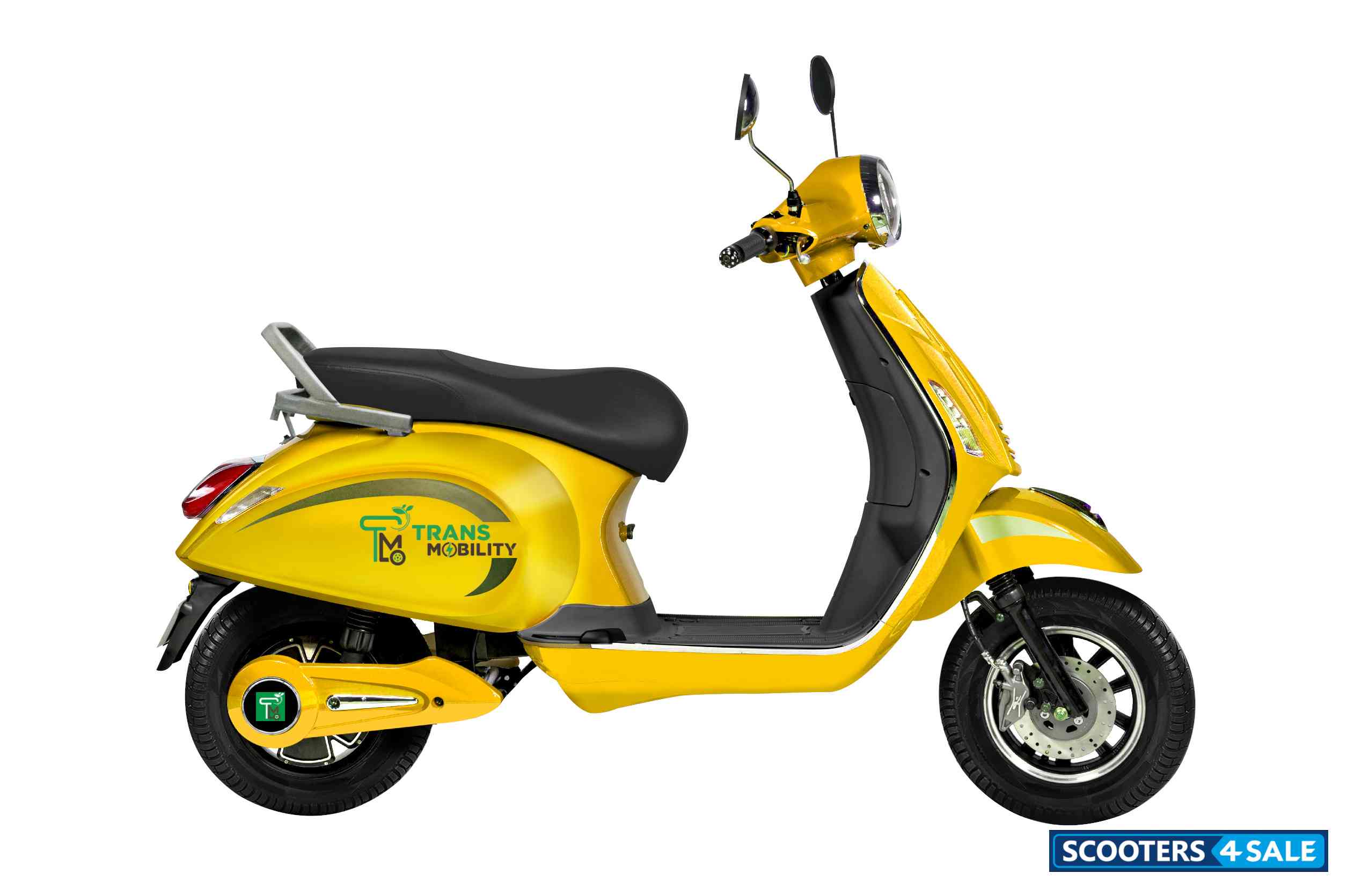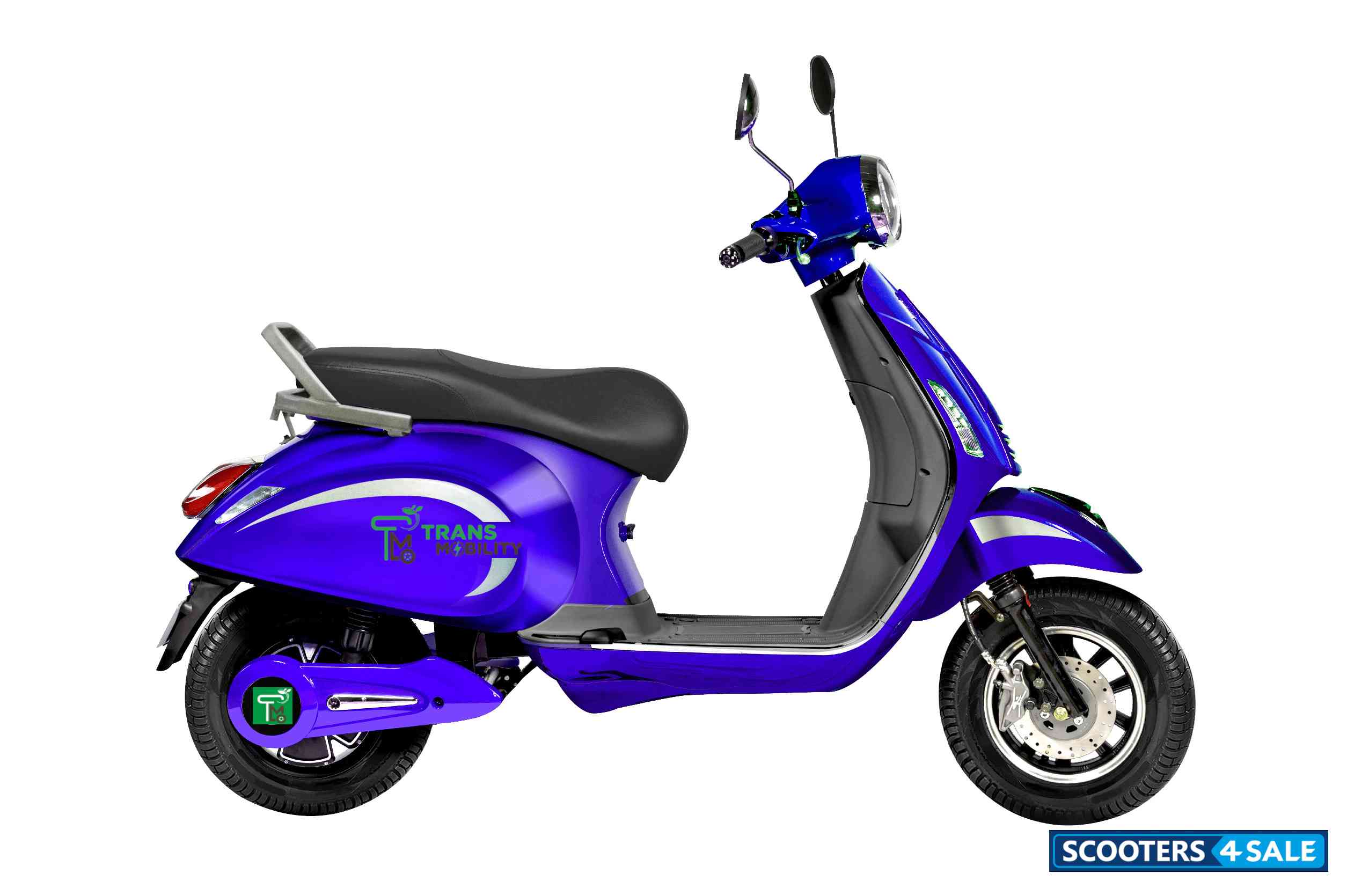 The Transmobility ACE Plus Electric Scooter has a lead acid battery (48v 29ah) and comes with a micro charger with auto cut. It also has a front disc brake and a rear drum brake, as well as a telescopic front suspension and a hydraulic rear suspension, which provide a smooth and comfortable ride. The scooter features alloy wheels with tubeless tires (3.00-10) for better traction and stability on the road, and it has a ground clearance of 165 mm.