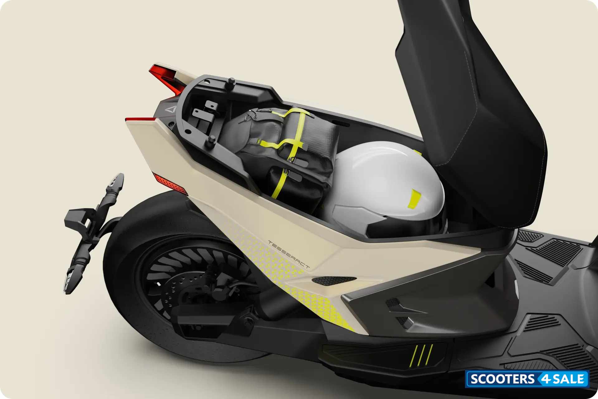 The Ultraviolette Tesseract Electric Scooter emphasizes futuristic design and smooth performance. The lightweight frame enhances agility, making it easy to navigate through city traffic. Dual-channel ABS ensures precise braking, adding confidence during sudden stops. Advanced battery technology extends the riding range, making it suitable for longer journeys.