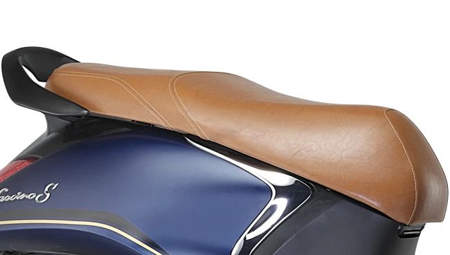 The Yamaha Fascino 125 FI Hybrid Disc Scooter is designed for convenience and comfort, with features such as a large 21-liter under-seat storage, multi-function key switch, easy leg reach, and easy-to-grip grab bar. The scooter also has a sleek and stylish design, with a metal front fender, stunning LED headlight with DRL, and a V-shaped LED tail light.