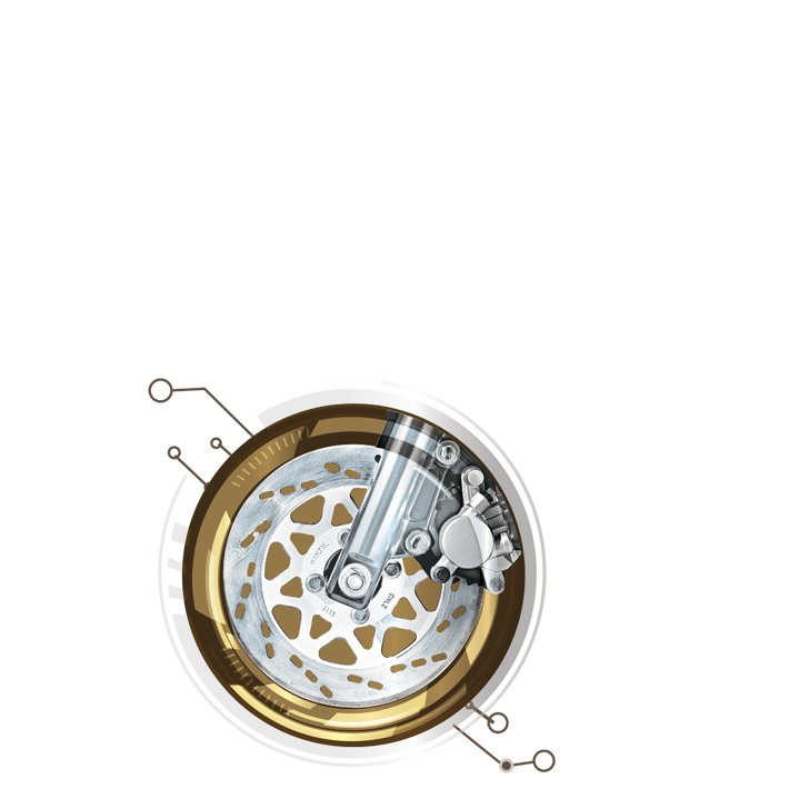 Advanced Telescopic Suspension is employed at the Front of the Jupiter while a Gas Charged Monoshock suspension is used at the rear. This suspension setup is seen in almost all scooter line up and is proven to be good for high speeds and also for almost all terrains.