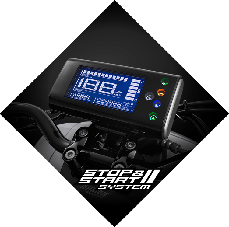 The new Qbix comes with an all new Digital Instrument cluster which is full of multi colours. The full LED Digital Display of the Qbix showcase brilliant functionality and visibility at night and displays all the necessary details required for the rider.