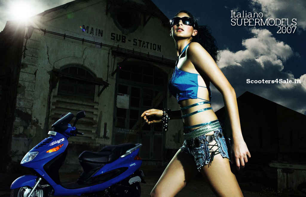 Pictures of gorgeous super models with the powerful scooter Kinetic Blaze. These pictures are part of the Kinetic Italiano Supermodels Wallpaper collection which was released in 2007. The partnership between Kinetic and Italiano didn't last long and the Blaze scooter was discontinued even though it had a huge fan following.