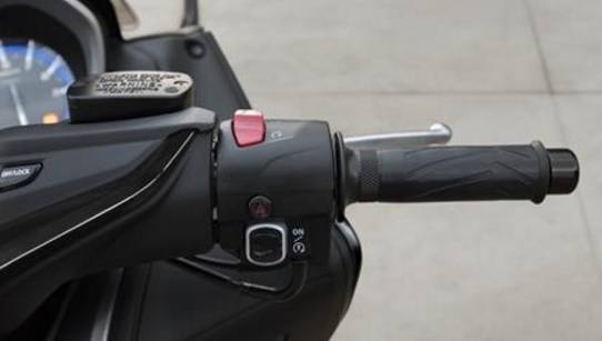 Yamaha has provided a stylish yet sophisticated TFT display panel to this sports scooter. The multi-function instrumentation features a speedometer on the left and tachometer on the right - while the central display includes an odometer, two trip meters, current and average fuel consumption and outside temperature, as well as additional indicators for various functions including the TCS.